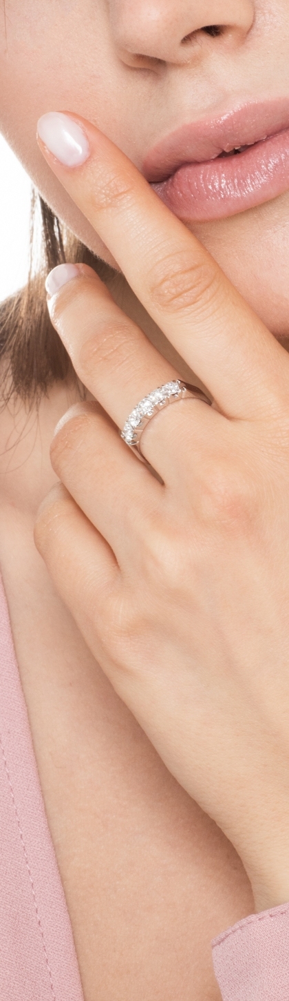 Anello Veretta a 5 pietre in Oro bianco 18k con diamanti ct. 0,70