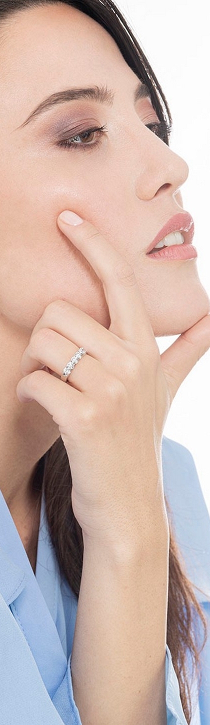 Anello Veretta a 5 pietre in Oro bianco 18k con diamanti ct. 1,00