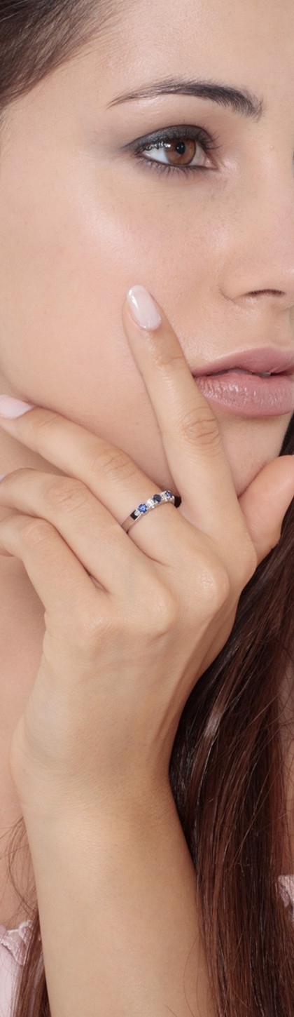 Anello Veretta a 5 pietre in Oro Bianco 18k con Diamanti e Zaffiri Blu