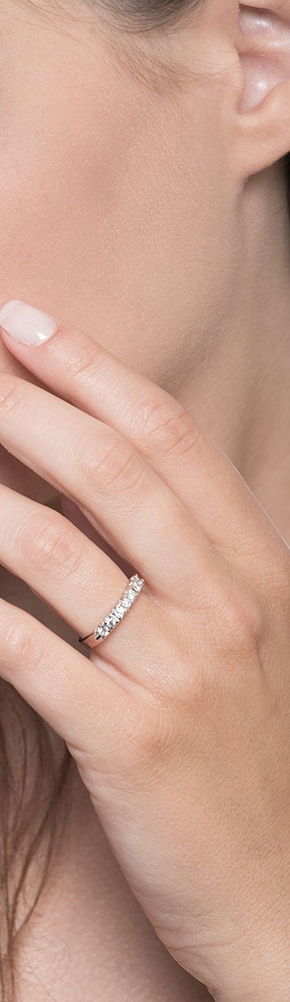 Anello Fedina a 7 pietre in oro bianco 18k, con incastonati diamanti taglio brillante del peso di carati. 0,35 Colore G e Purezza Vs.