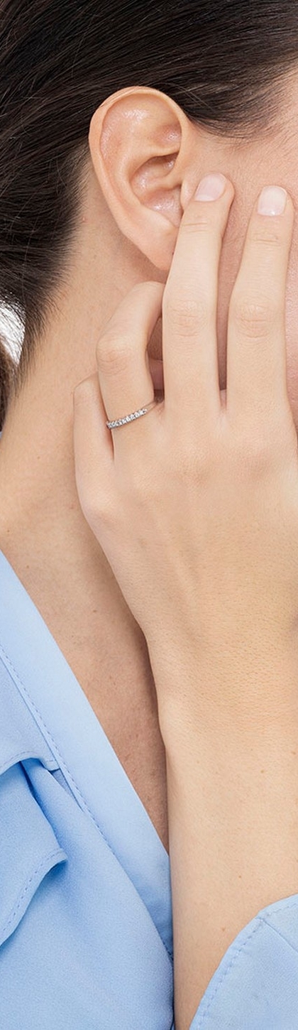 Anello Veretta a 9 pietre in Oro bianco 18k con Diamanti, ct 0,10