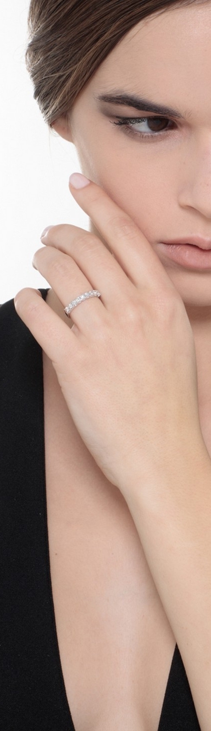 Anello Veretta a 9 pietre in Oro bianco 18k con Diamanti ct. 0,40