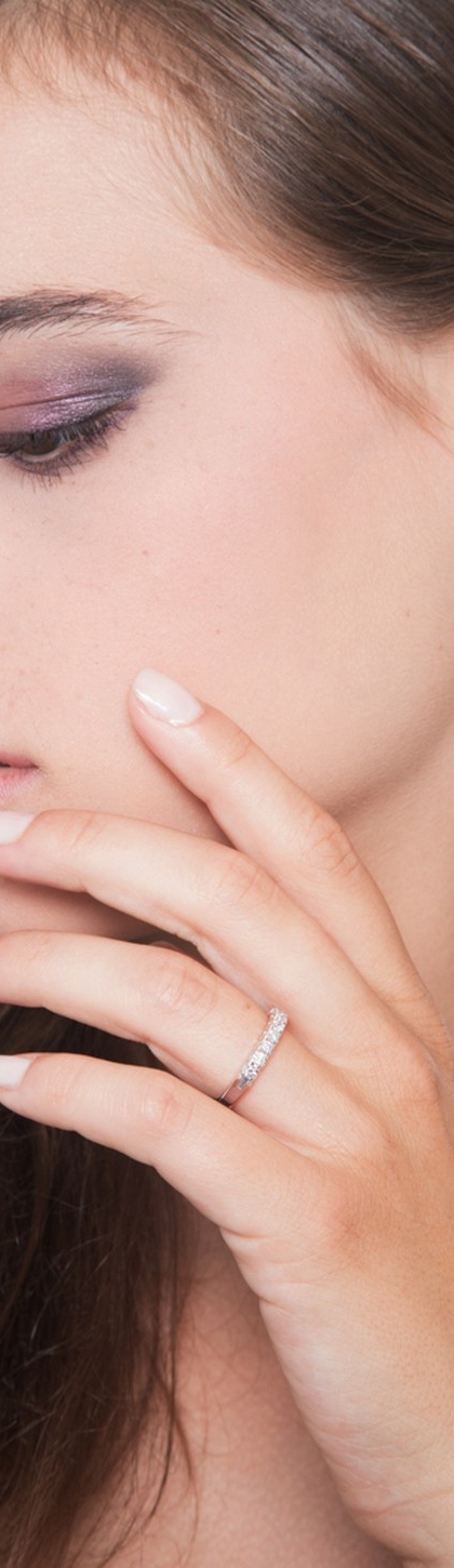 Anello Veretta a 9 pietre in Oro bianco 18k con Diamanti ct. 0,50