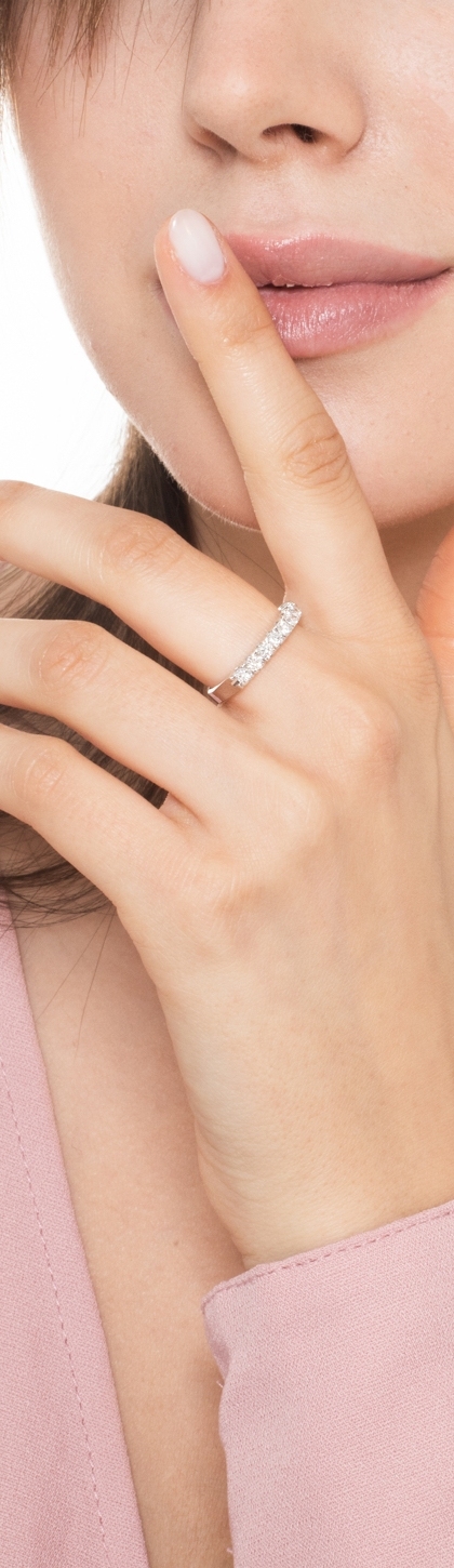 Anello Veretta a 9 pietre in Oro bianco 18k con diamanti ct. 0,60