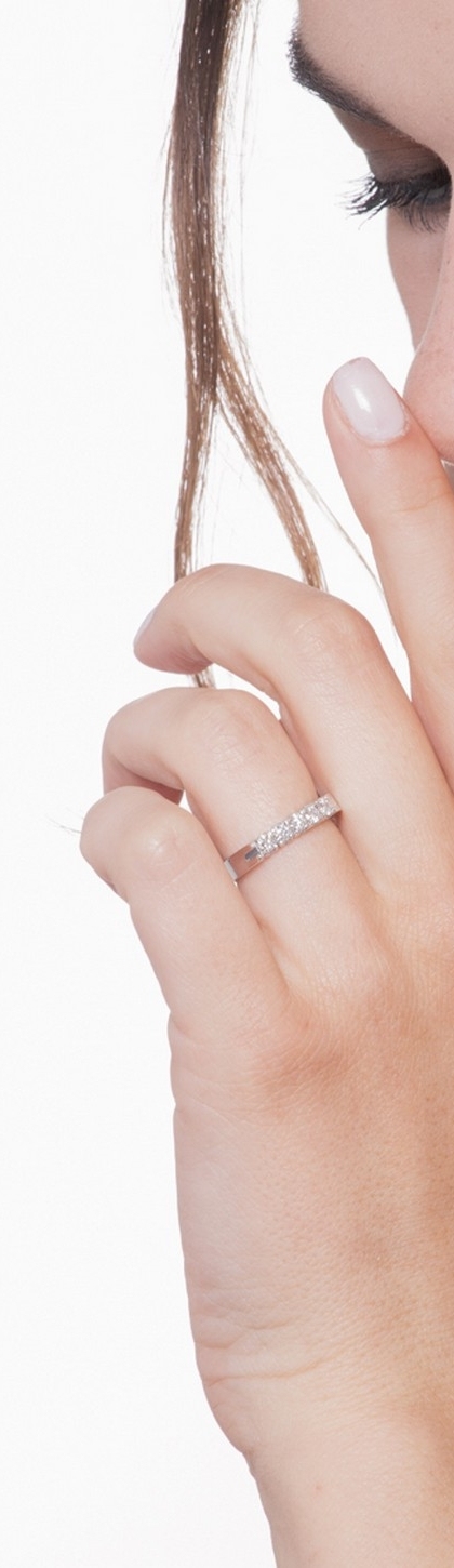 Anello Veretta diamantata ai lati a 5 pietre in Oro bianco 18k con diamanti ct. 0,50