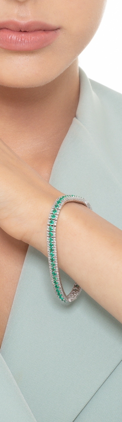 Bracciale in oro bianco 18k con smeraldi e diamanti