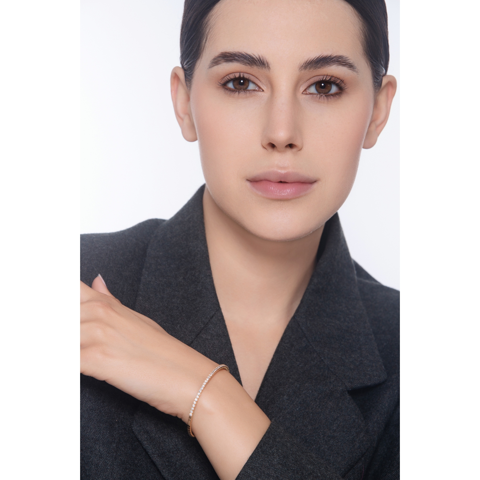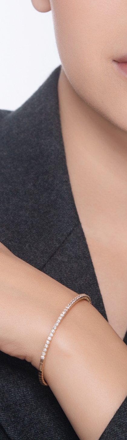 Bracciale tennis rigido in oro rosa 18k con diamanti