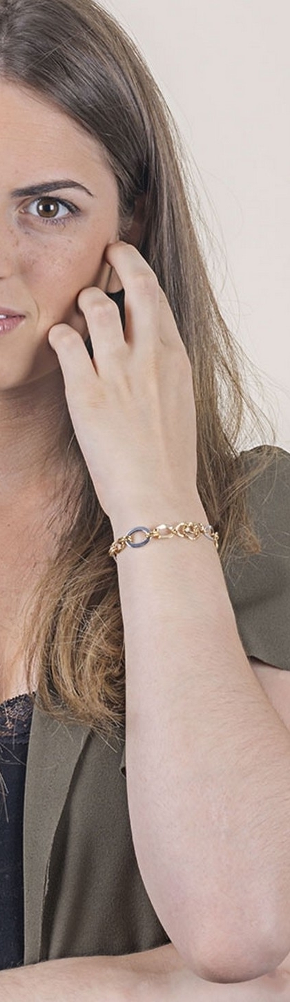 Bracciale catena in Oro Giallo 18k con inserti oro bianco lucido, cm 19.
