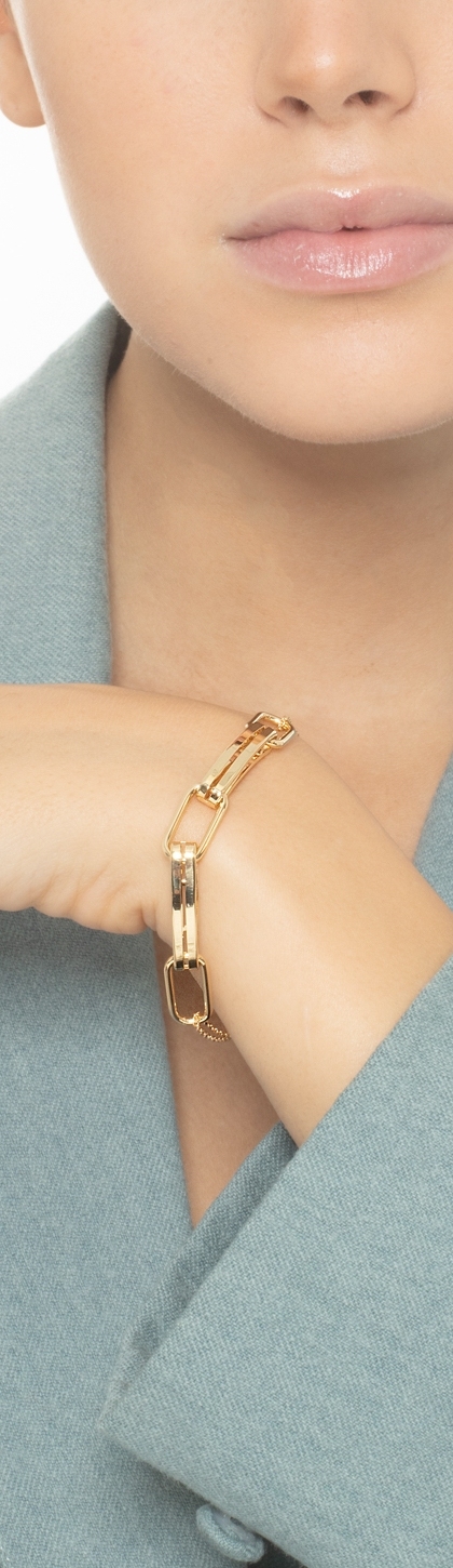 Bracciale in oro giallo 18k con maglie a graffetta, cm 18+2