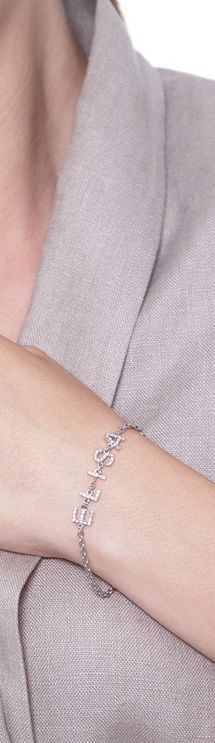 Bracciale con scritta personalizzabile in oro Bianco 18k e diamanti, ELISA