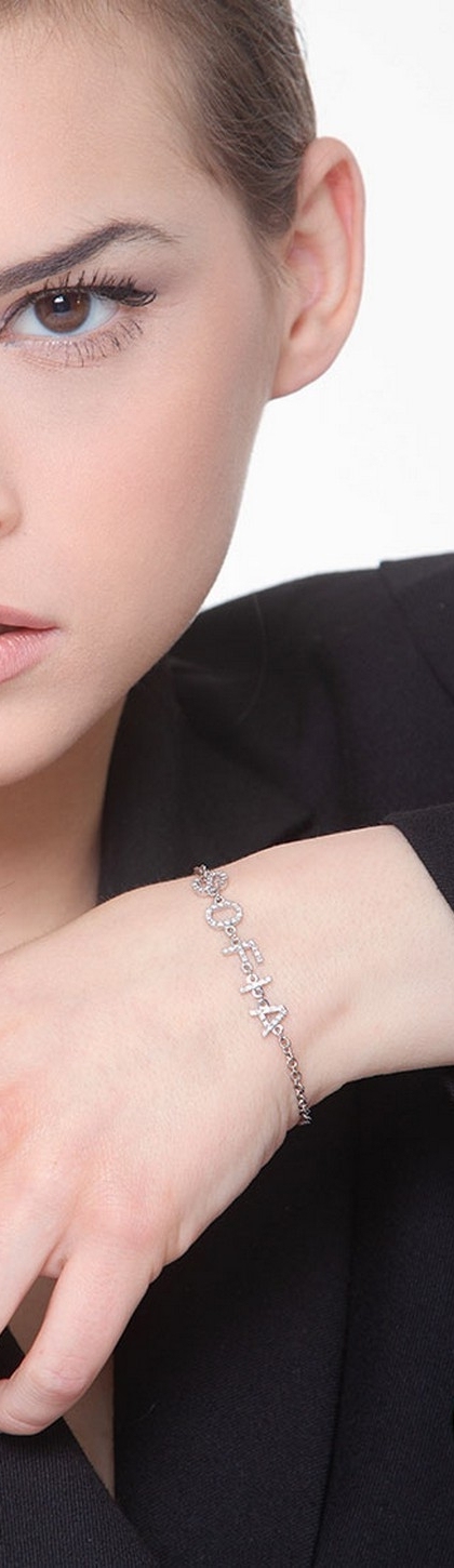 Bracciale con scritta personalizzabile in oro Bianco 18k e diamanti, SOFIA