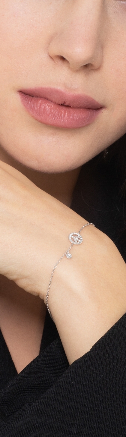 Bracciale con simbolo della Pace e punto luce in oro bianco 18k e diamanti