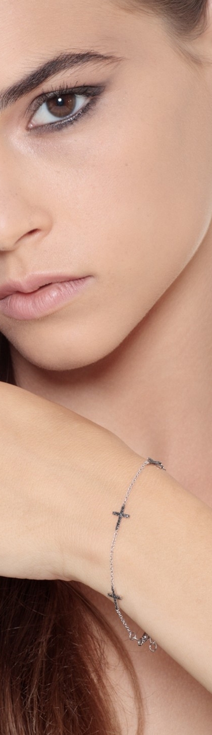 Bracciale in oro Bianco 18k con croci in Diamanti neri, 15+3 cm