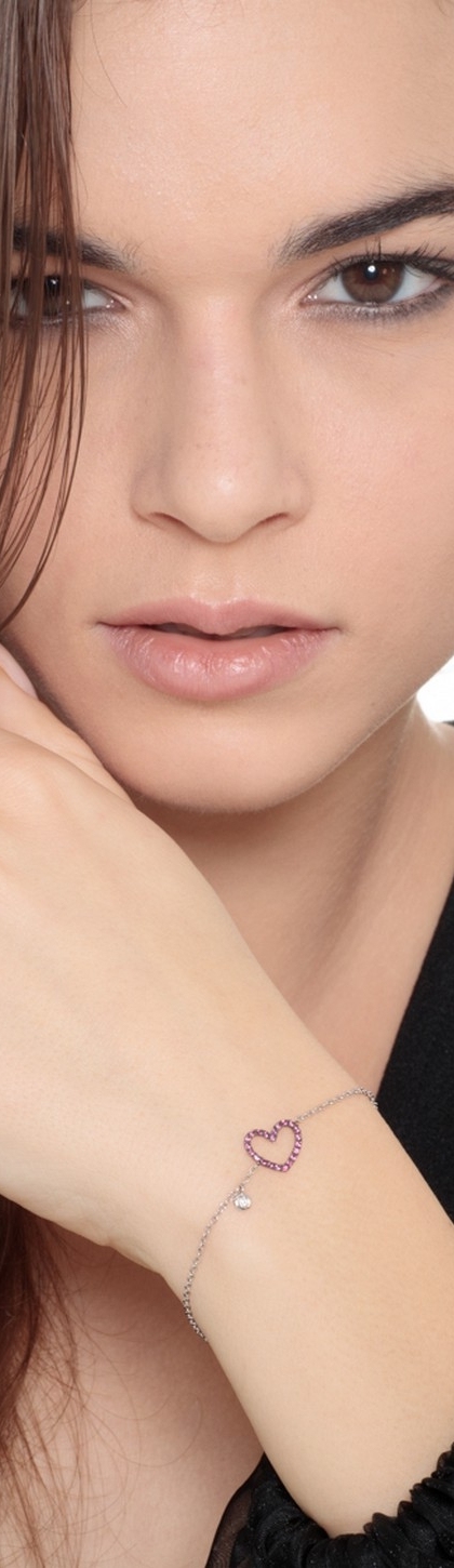 Bracciale in oro Bianco 18k con Cuore in Rubini e Diamante
