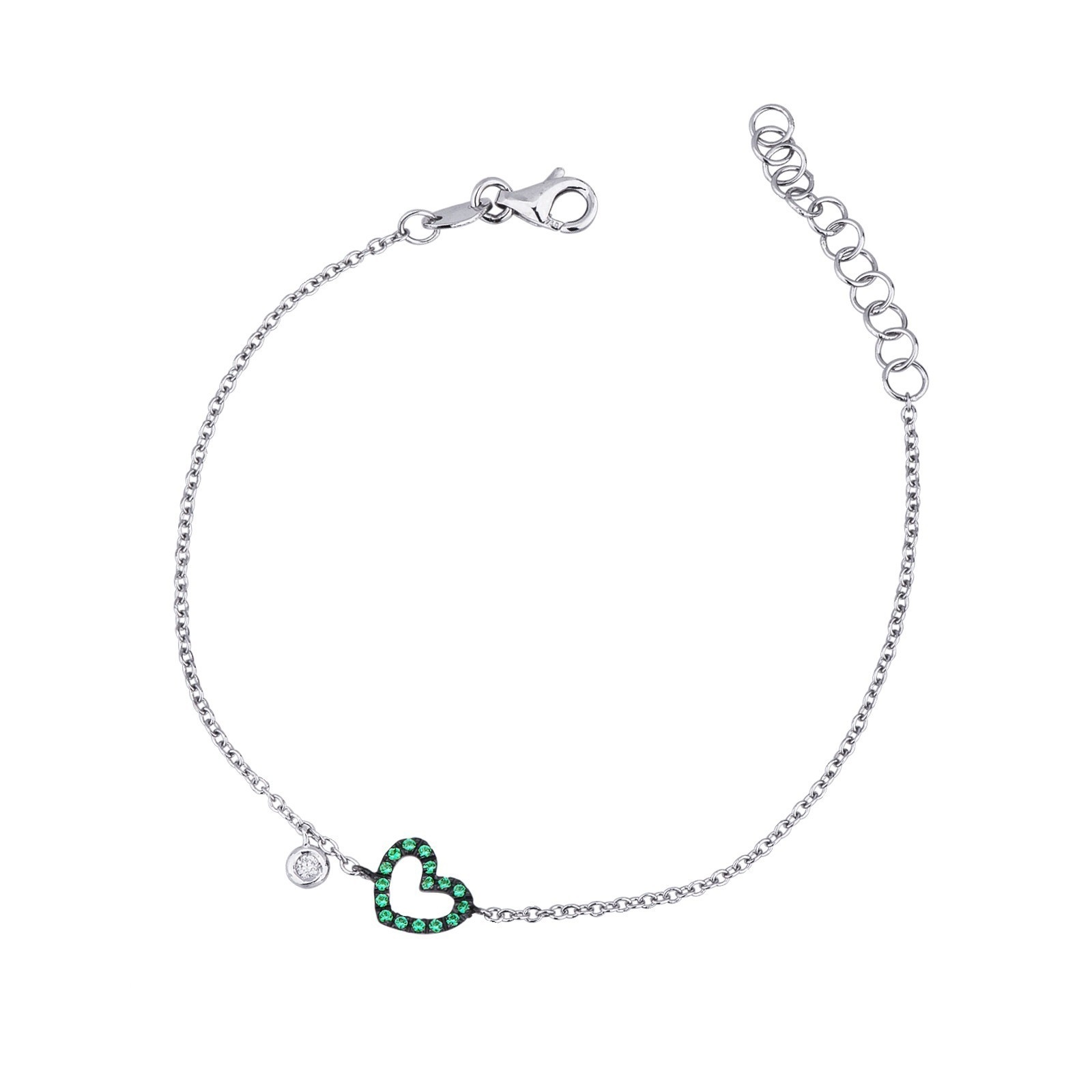 Bracciale in oro bianco 18k con Smeraldi e Diamante