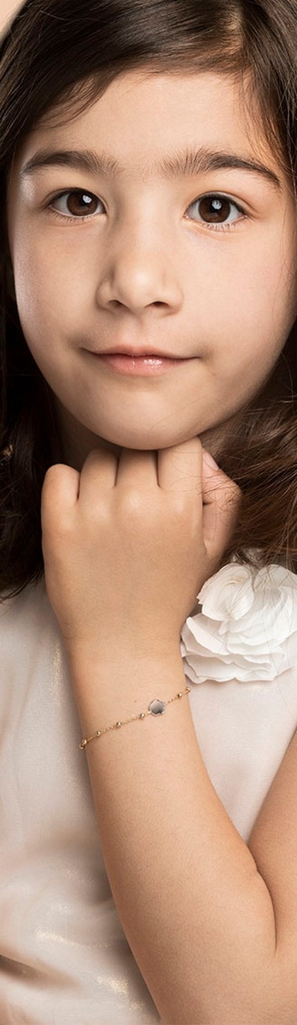 Bracciale in Oro Giallo 18k con inserti a sfera e fiore.