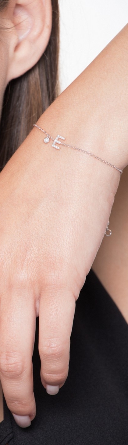 Bracciale lettera E in oro bianco 18k con diamanti