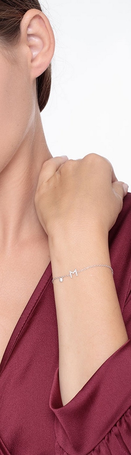 Bracciale lettera M in oro bianco 18k con diamanti