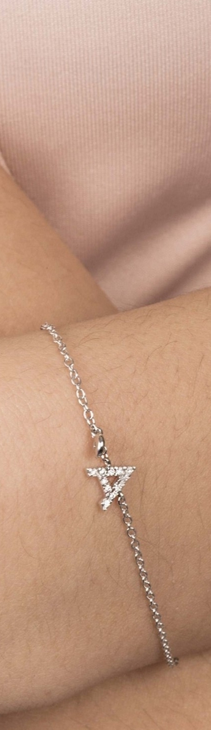 Bracciale in oro Bianco 18k con letterina A e diamanti taglio brillante, colore G, purezza Vs.