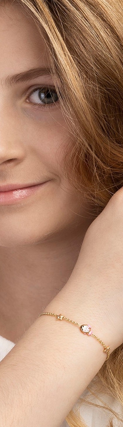 Braccialetto con pesciolino e stelle marine in oro giallo 18k, cm 14