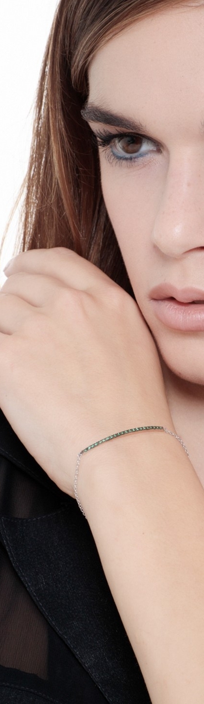 Bracciale in oro bianco 18k con barretta in Smeraldi