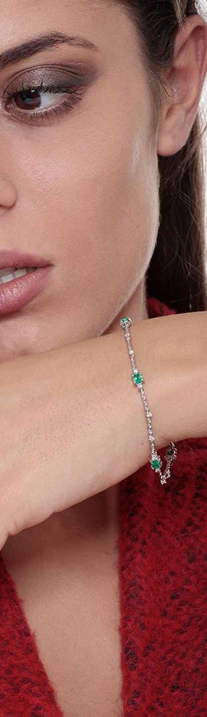 Bracciale in oro bianco 18k con diamanti e smeraldi