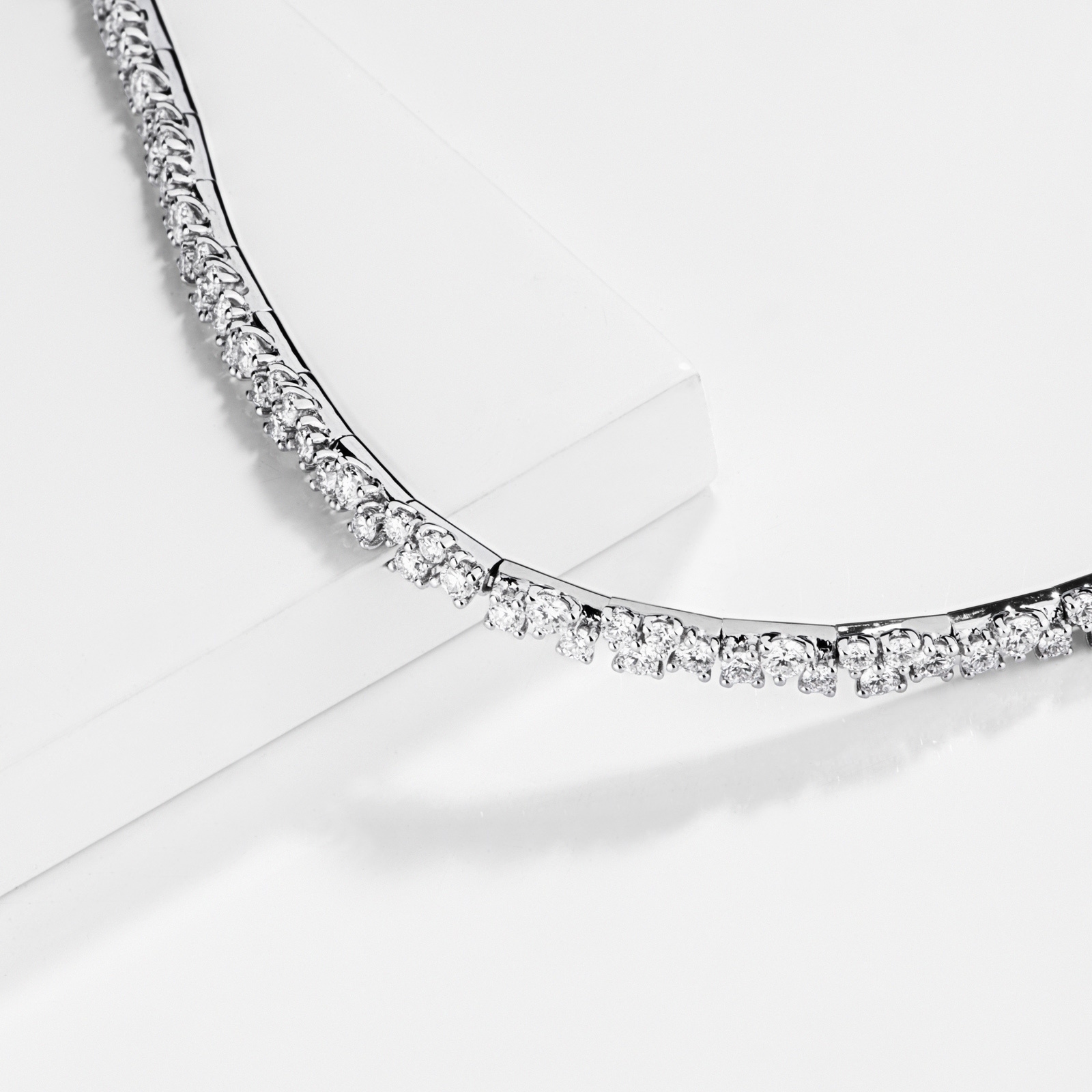 Bracciale in oro bianco 18k con diamanti taglio brillante, colore G, purezza Vs. Il bracciale ha una lunghezza di circa 17.5 cm. La chiusura del bracciale è a scomparsa.