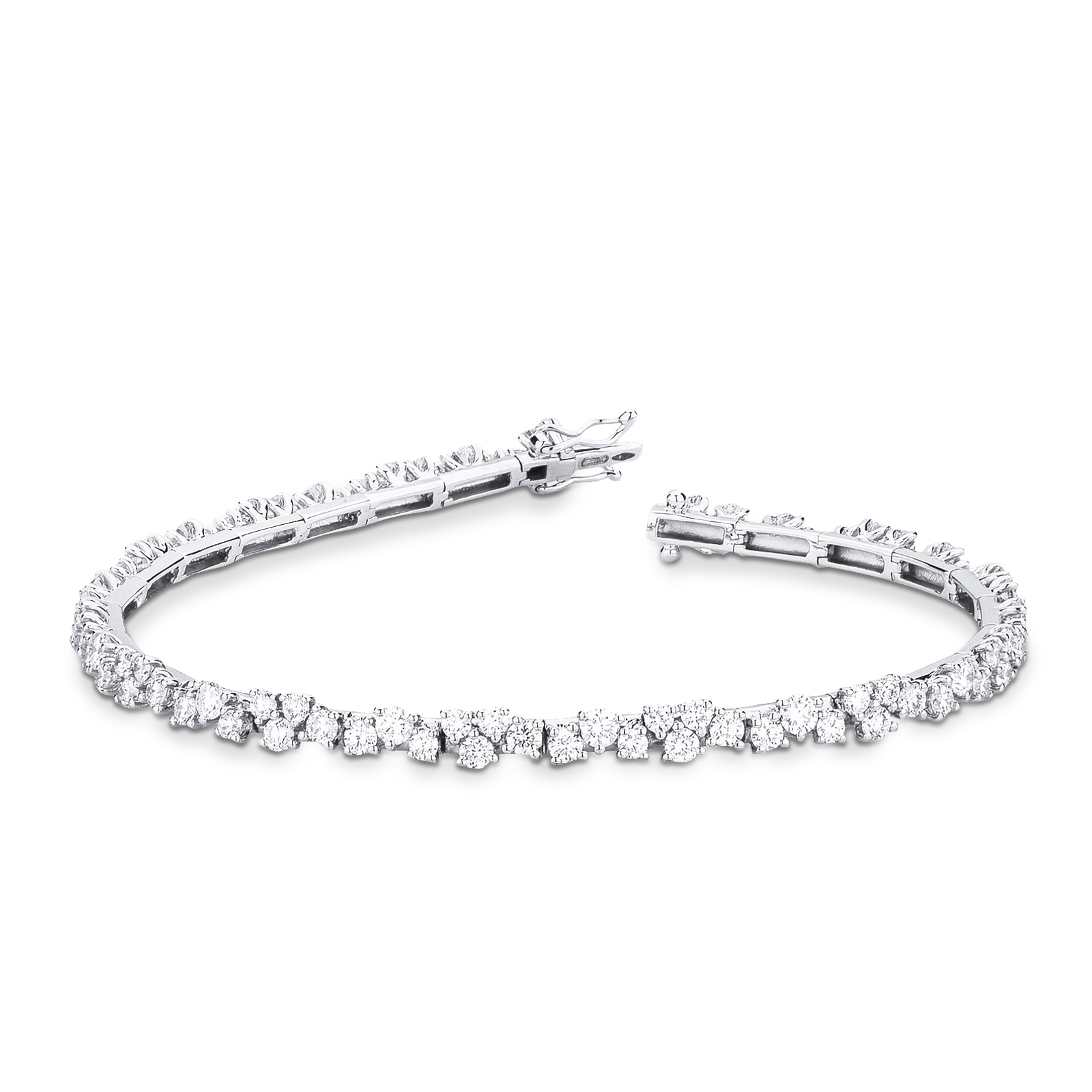 Bracciale in oro bianco 18k con diamanti taglio brillante, colore G, purezza Vs. Il bracciale ha una lunghezza di circa 17.5 cm. La chiusura del bracciale è a scomparsa.