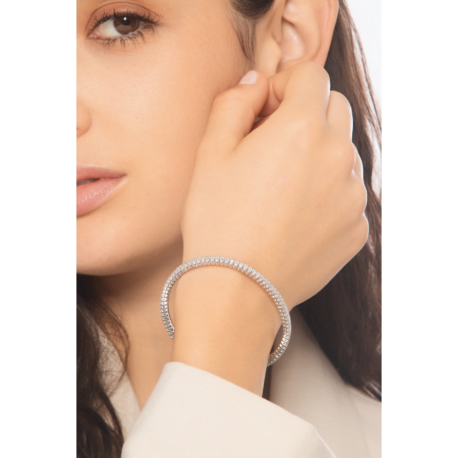 Bracciale elastico in oro bianco 750 con diamanti