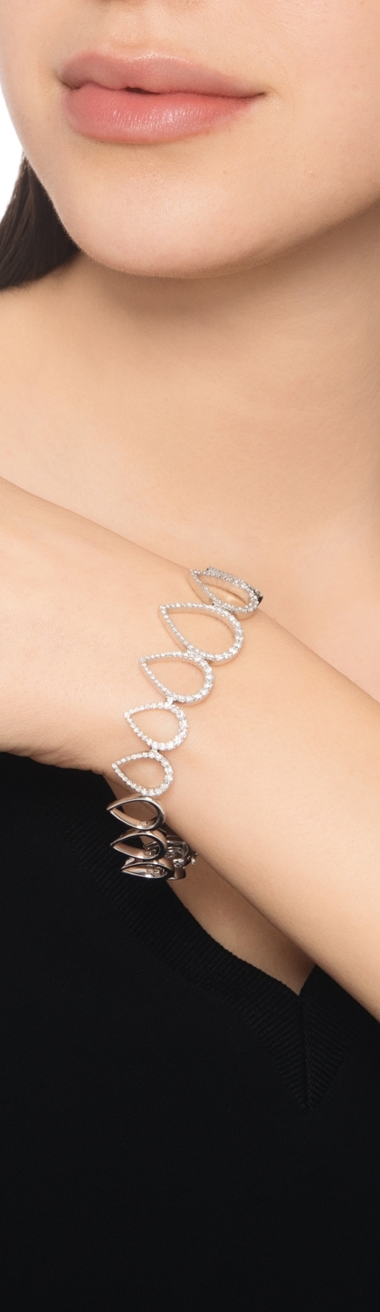 Bracciale fantasia goccia in oro bianco 18k con diamanti