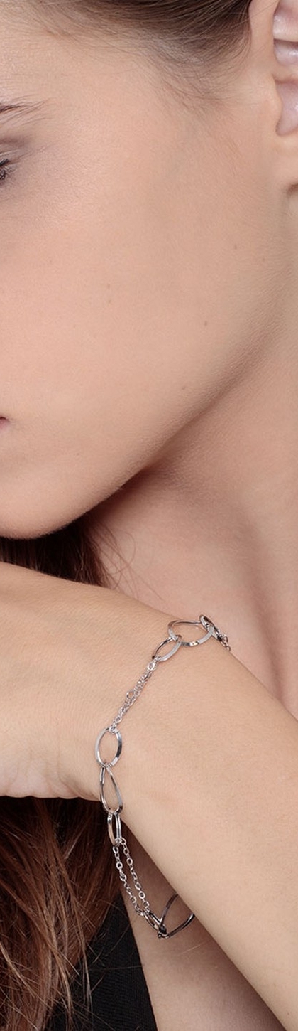 Bracciale in Oro Bianco 18k con anelli ovali, cm 19.