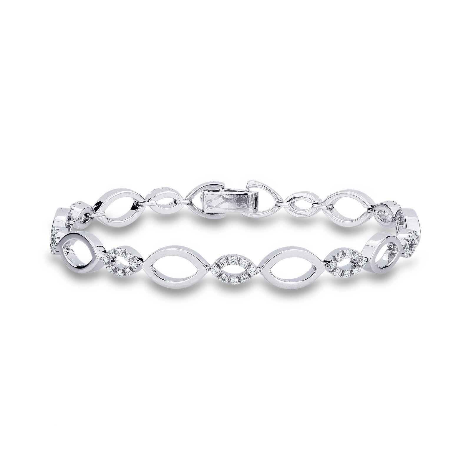 Bracciale in oro bianco 18k con elementi di forma ovale con diamanti