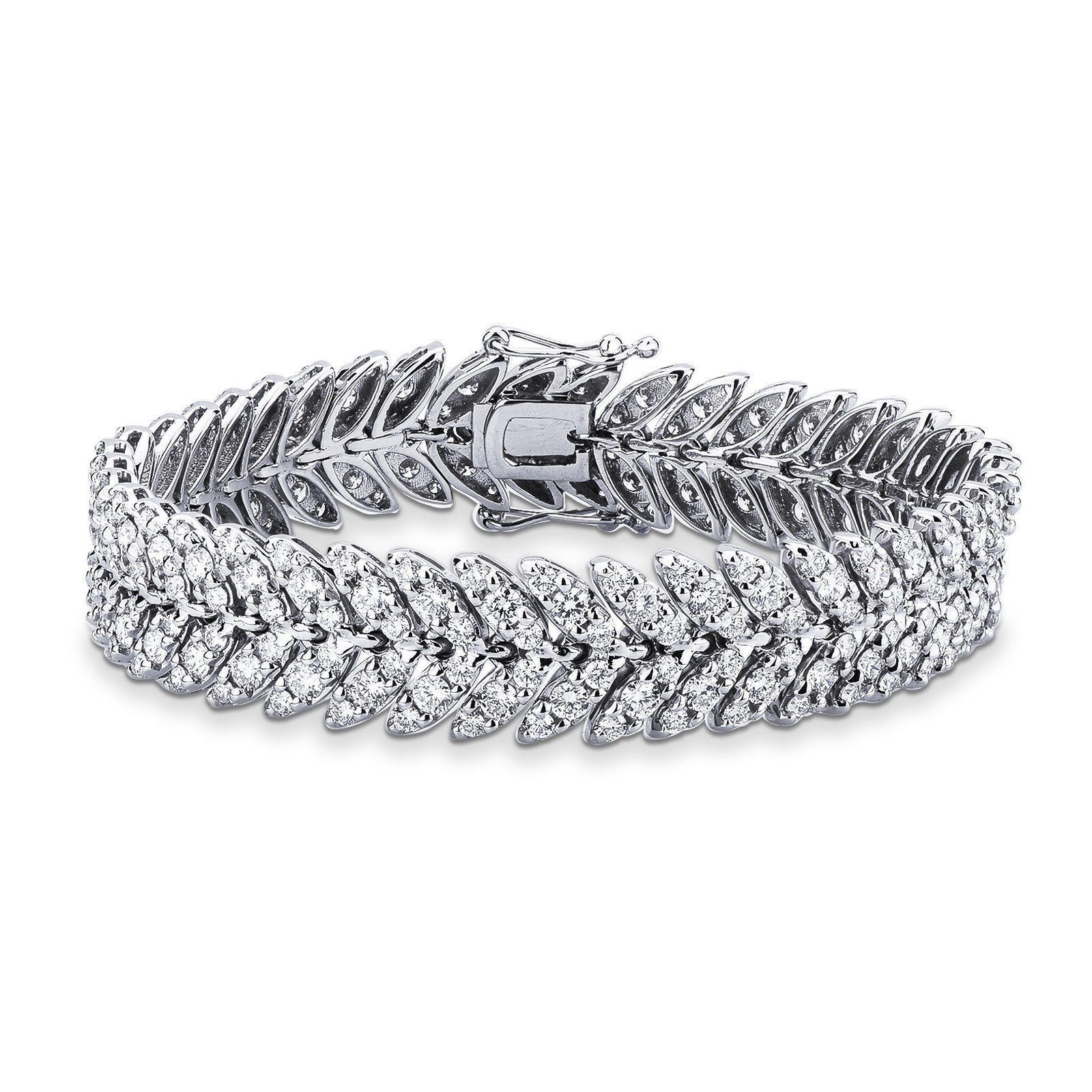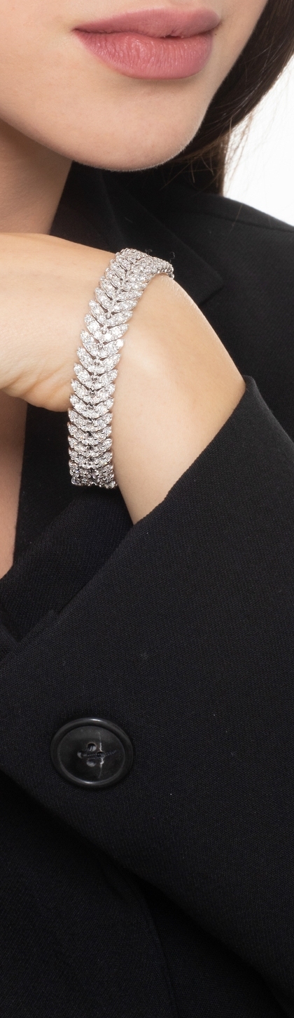 Bracciale in oro bianco 18k con maglie a spiga tipo navette in diamanti.