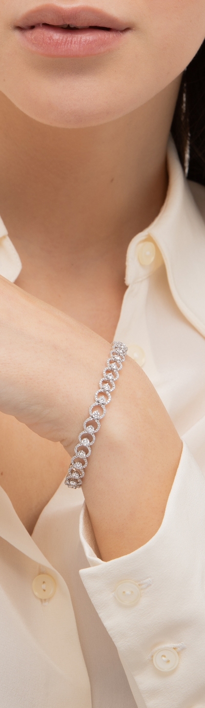 Bracciale in oro bianco 750 con diamanti, cm 17.5