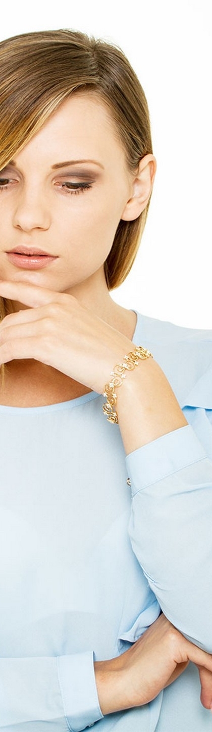 Bracciale in oro Giallo 18k con maglie lavorate e diamanti