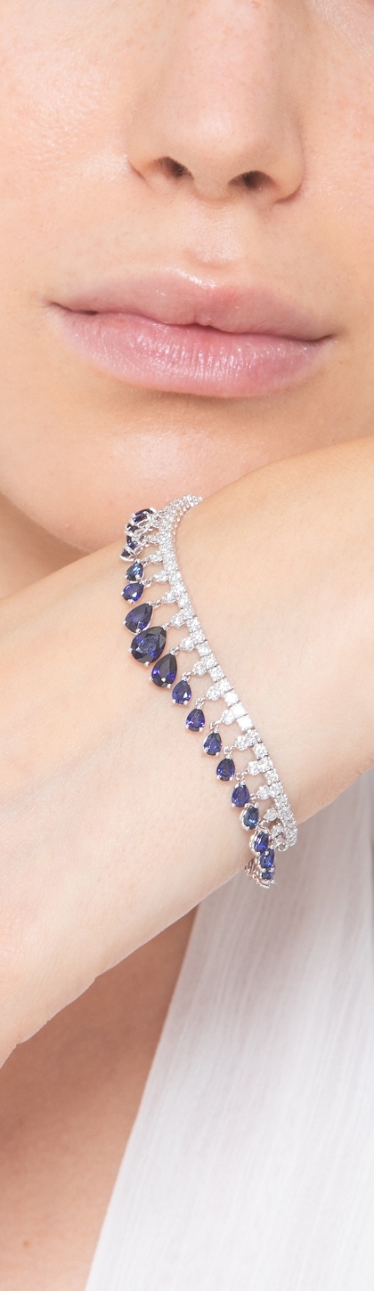 Bracciale tennis design in oro bianco 750 con zaffiri blu e diamanti