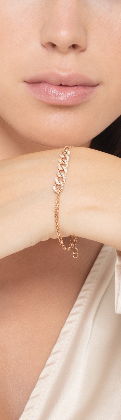 Bracciale a 6 maglie groumette in oro rosa 18k con diamanti, cm 16+32.780,00 €1.390,00 €