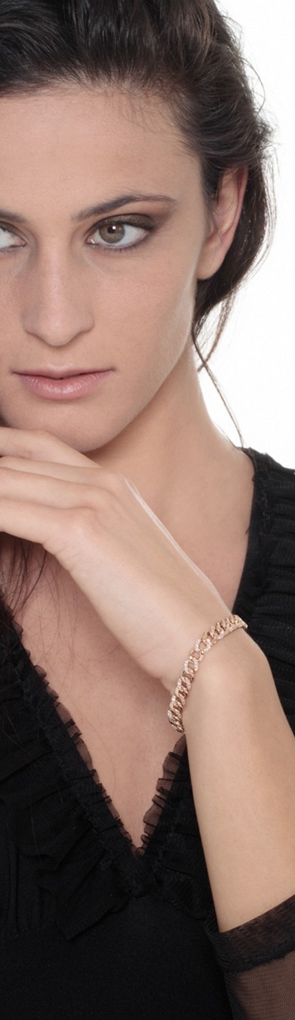 Bracciale groumette alternato in oro rosa 18k e diamanti