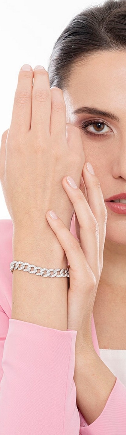 Bracciale maglia groumette in oro bianco 18k con Diamanti