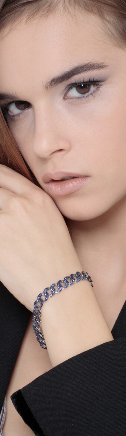 Bracciale maglia groumette in oro bianco 18k con Zaffiri Blu e punte brunite