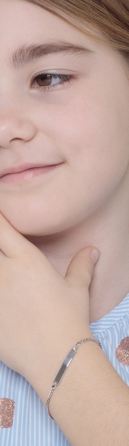 Bracciale con piastrina in oro bianco 18k, cm 16