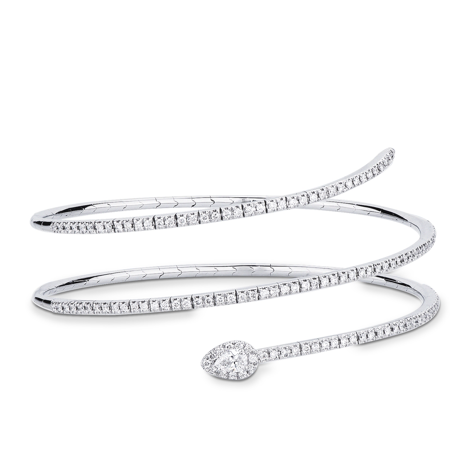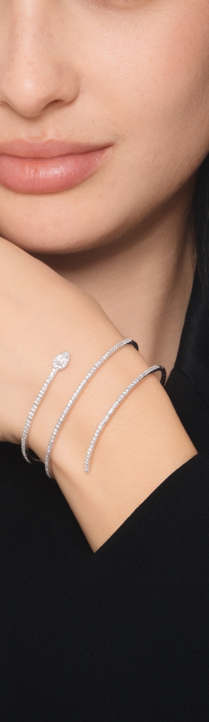 Bracciale a molla con un diamante a goccia e brillanti in oro bianco 750