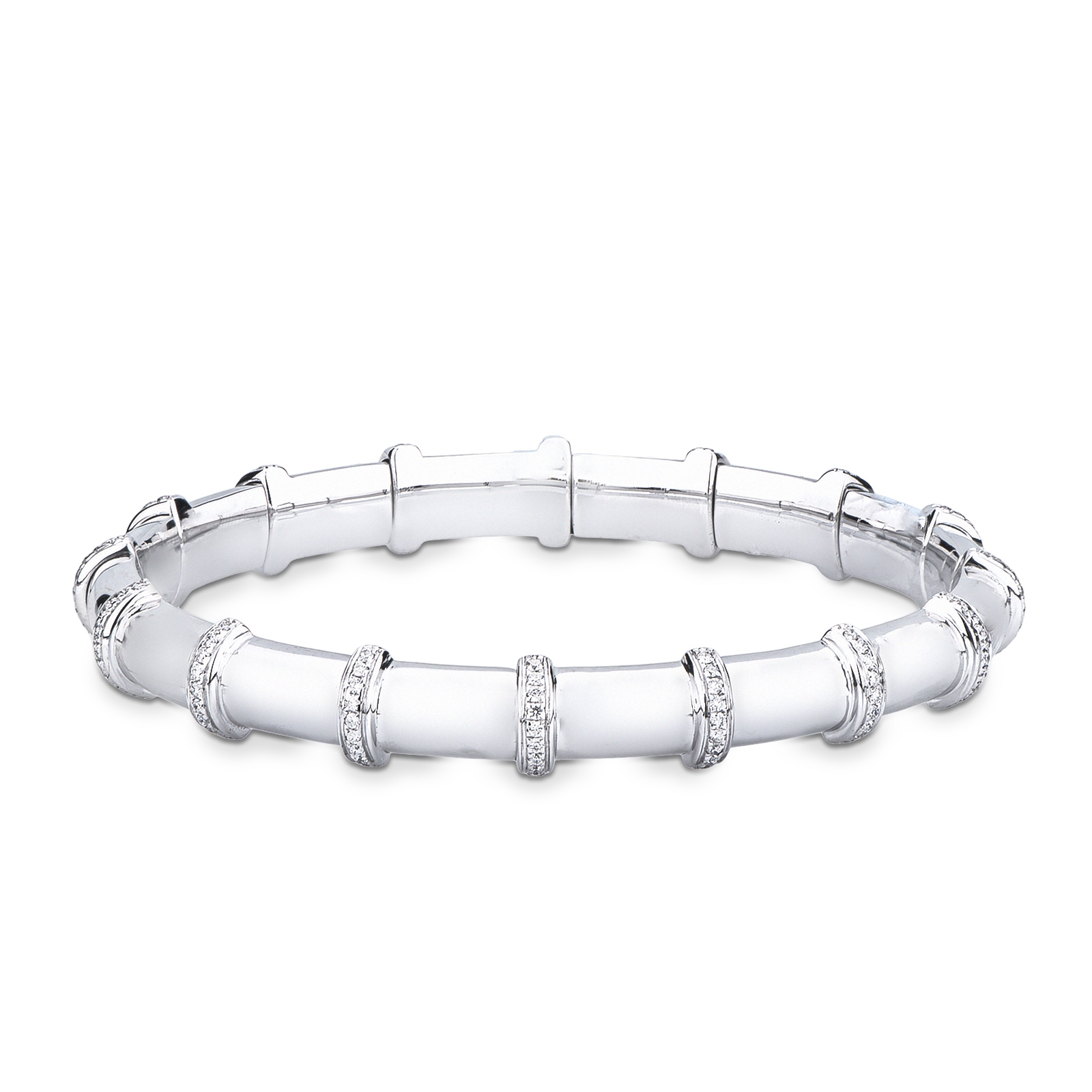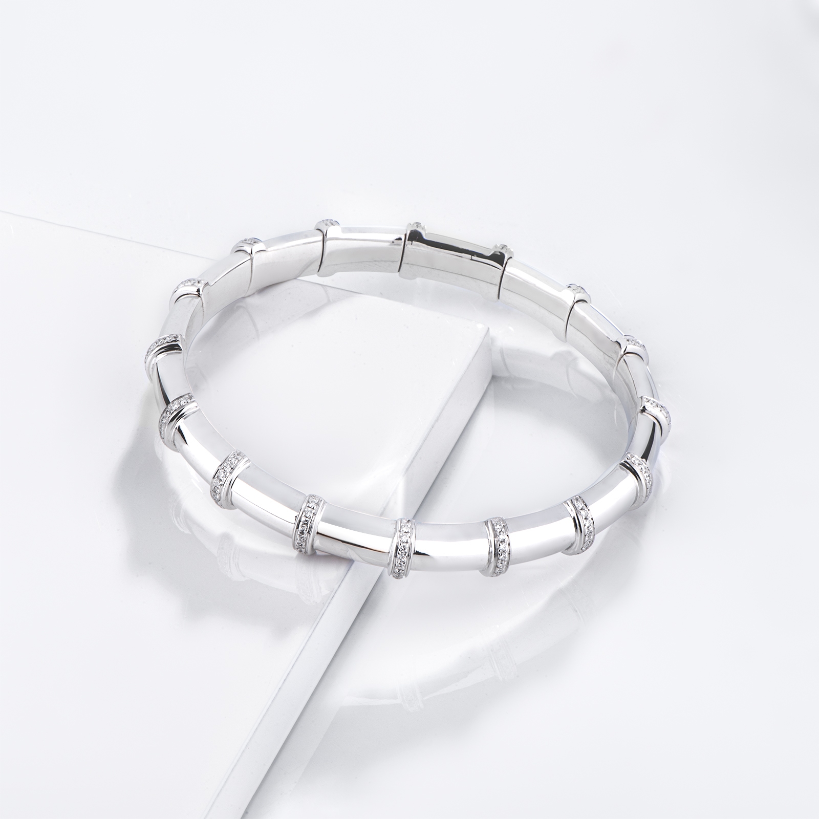Bracciale elastico design in oro bianco 18k con file in diamanti