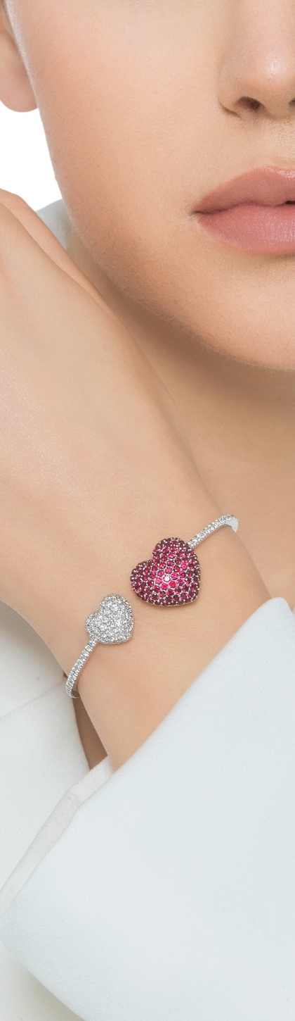 Bracciale in oro bianco 750 con cuori in diamanti e rubini