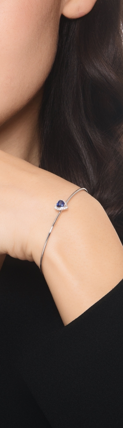 Bracciale rigido in oro 18k con zaffiro blu cuore e diamanti