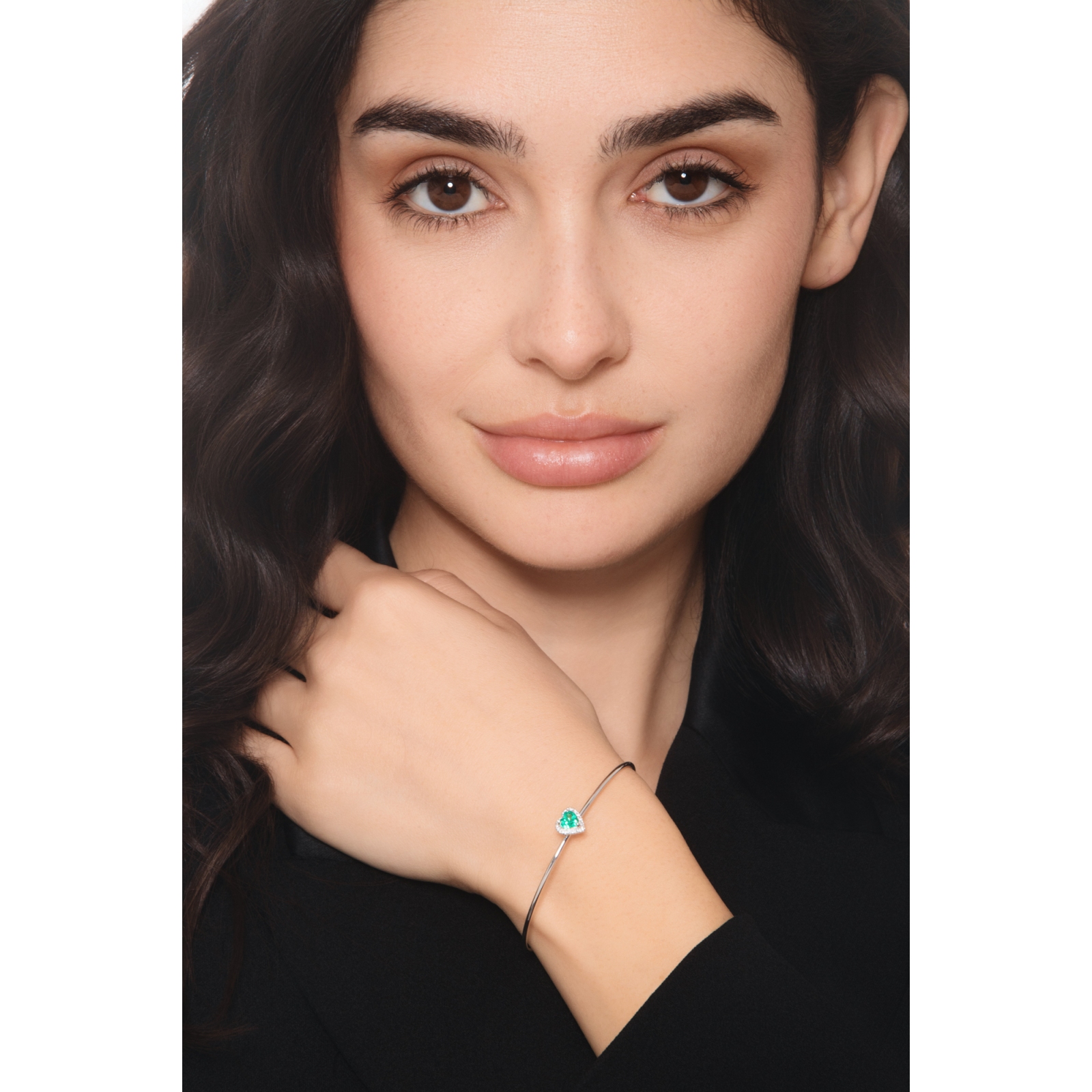 Bracciale rigido in oro bianco 18 carati smeraldo e diamante