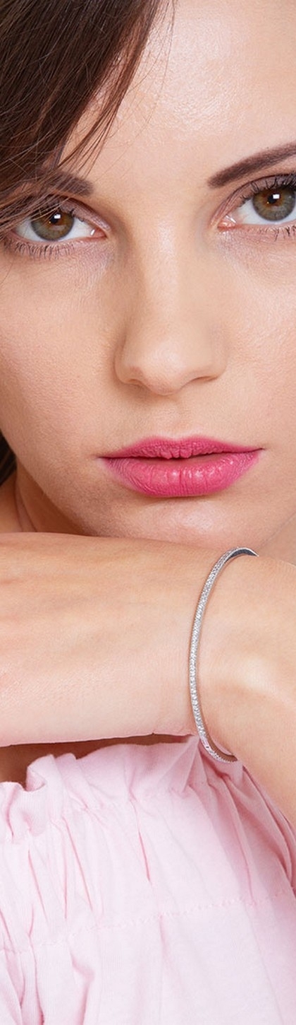 Bracciale rigido in oro bianco 18k con diamanti a giro completo