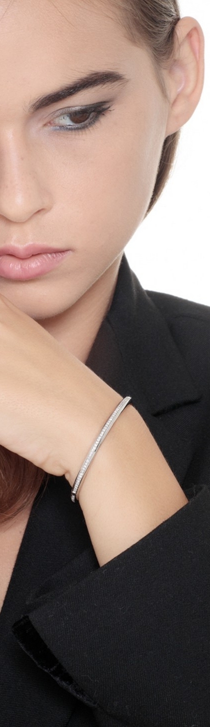 Bracciale rigido in oro bianco 18k con diamanti a tutto giro