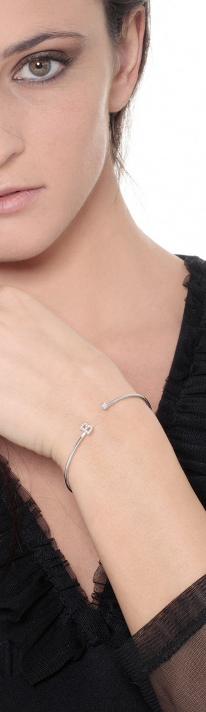 Bracciale rigido in oro bianco 18k con lettera B in diamanti