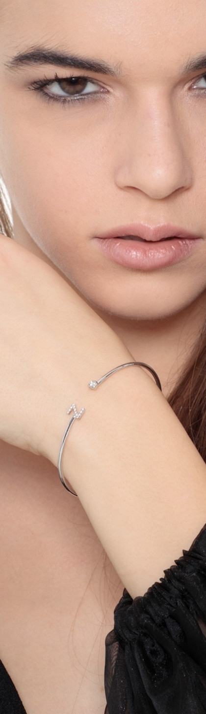 Bracciale rigido in oro bianco 18k con lettera Z in diamanti
